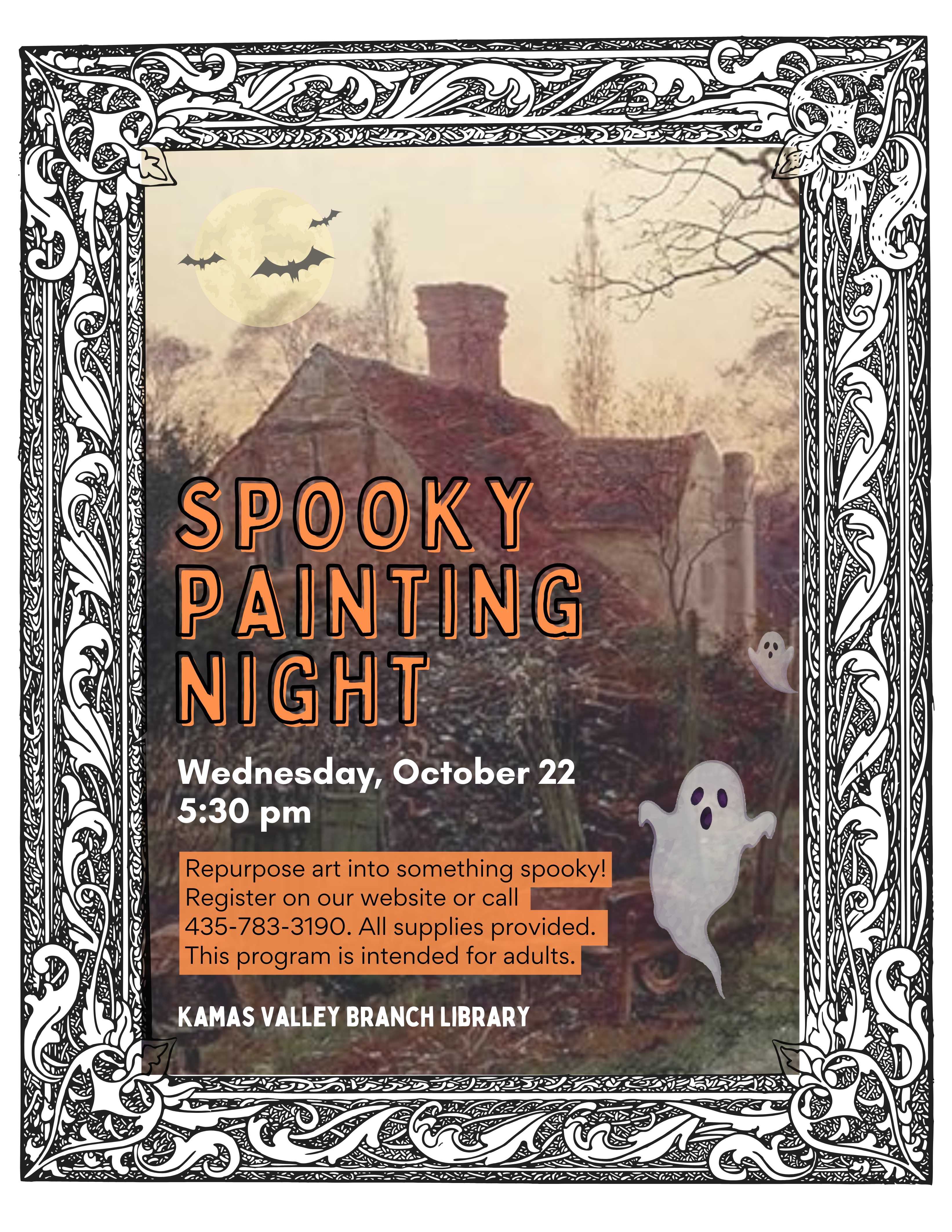 Learn how to repurpose art into something spooky! Register on our website or call 435-783-3190. All supplies provided. This program is intended for adults.